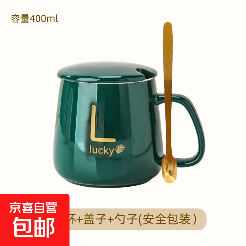 杯子伴手礼套装陶瓷马克水杯开业年会新年结婚礼盒送人实用礼品 绿色单杯+盖子+勺子(安全包装) 400毫升