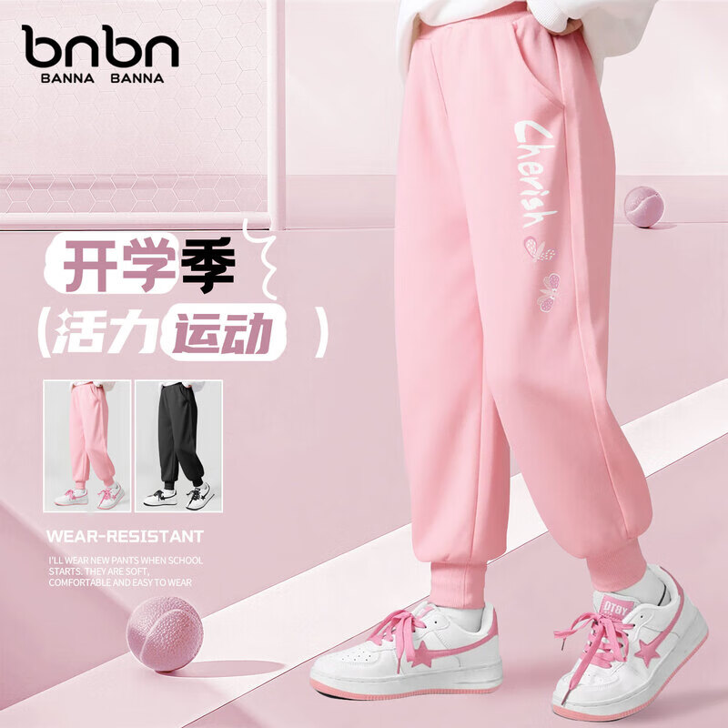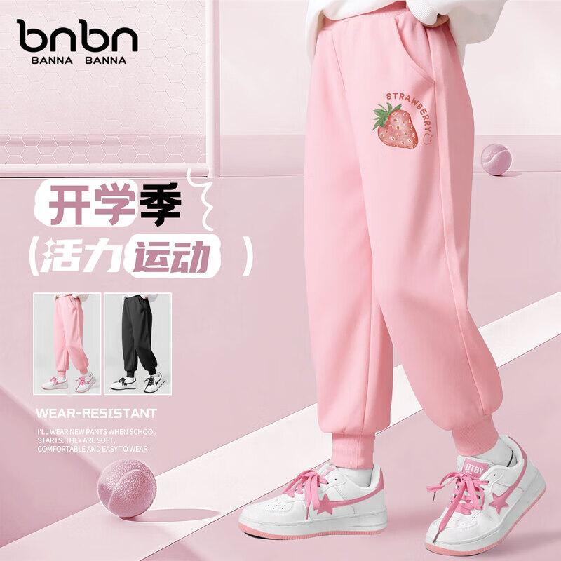 班纳班纳童装儿童卫衣套装2025新款秋季运动潮流宽松女童休闲裤男童上衣 草莓K粉1 130