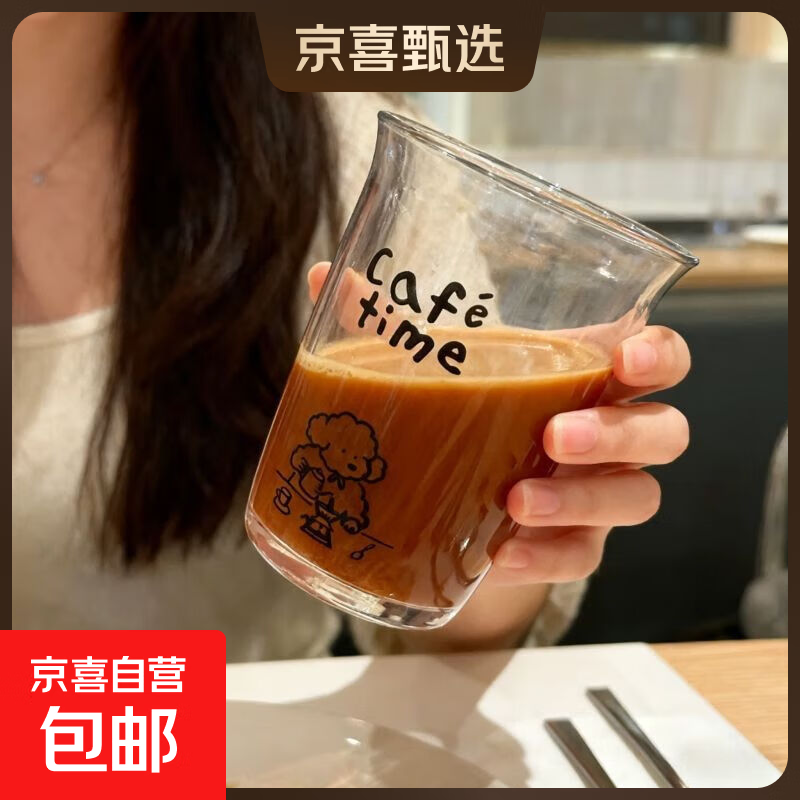 【活动】印花玻璃杯ins风高颜值家用可爱小狗家用学生女送礼水杯 小狗玻璃杯【1只350ml】