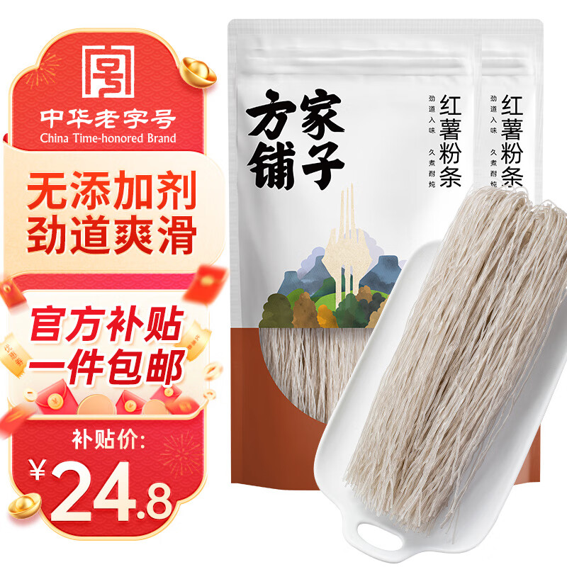 方家铺子中华老字号 纯红薯粉条 酸辣粉火锅食材配料久煮不糊 400g*2袋