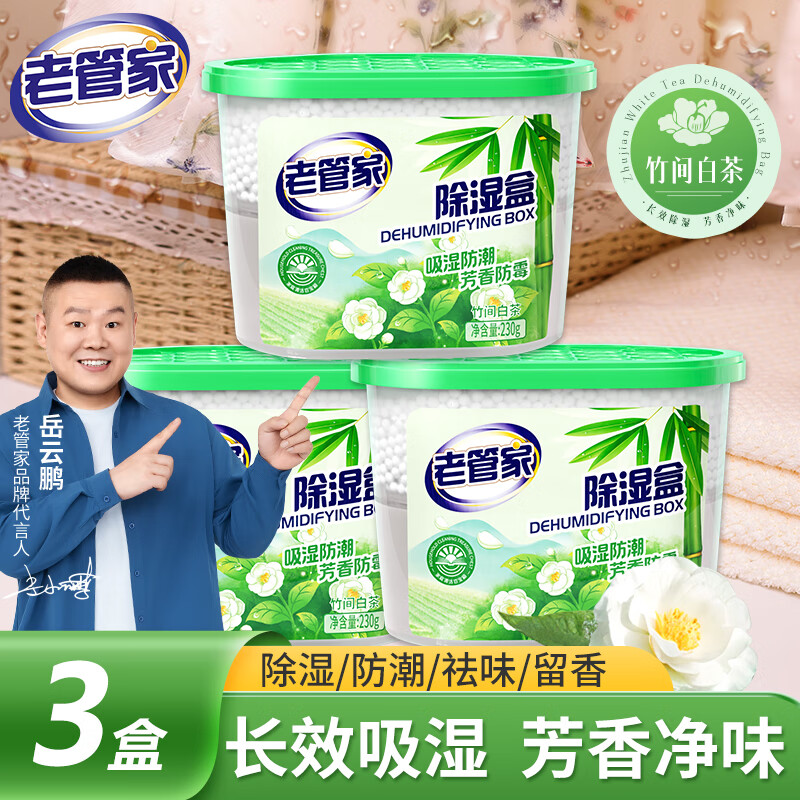 老管家竹间白茶除湿盒230g家用干燥剂室内衣柜房间汽车吸湿袋防霉防潮剂 230g*3盒【日常使用】