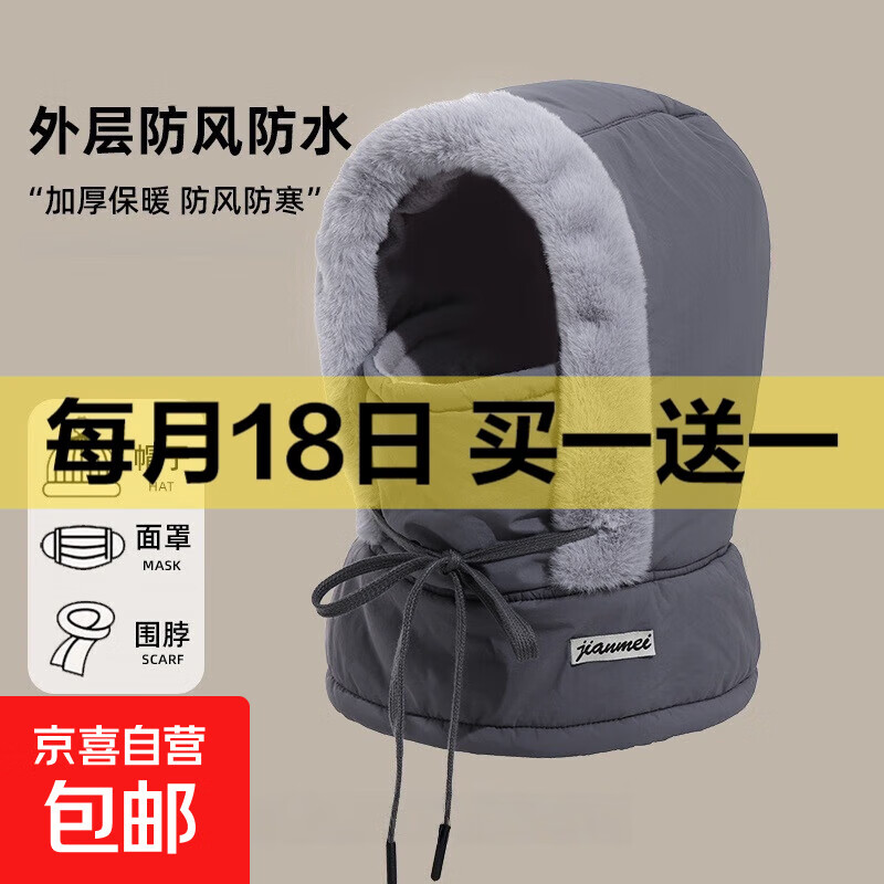 2025冬季保暖雷锋帽男女加绒加厚护耳围脖帽子一体骑行防寒面罩 男士保暖帽-深灰色【不惧寒风】