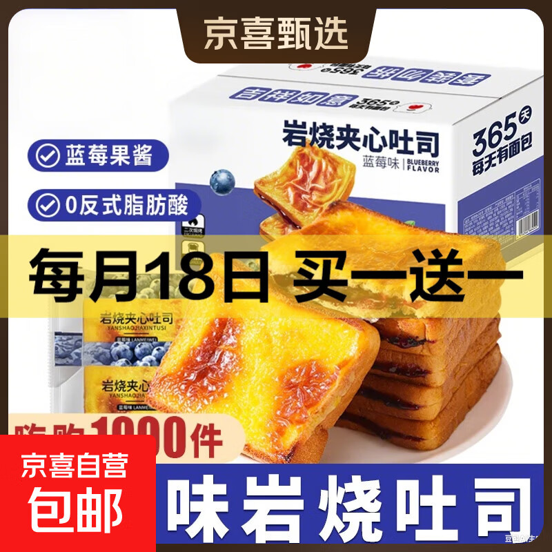 泓一岩烧蓝莓吐司面包300g 60g/包 早餐面包代餐饱腹休闲零食品 【爆浆蓝莓】岩烧吐司蓝莓味300g