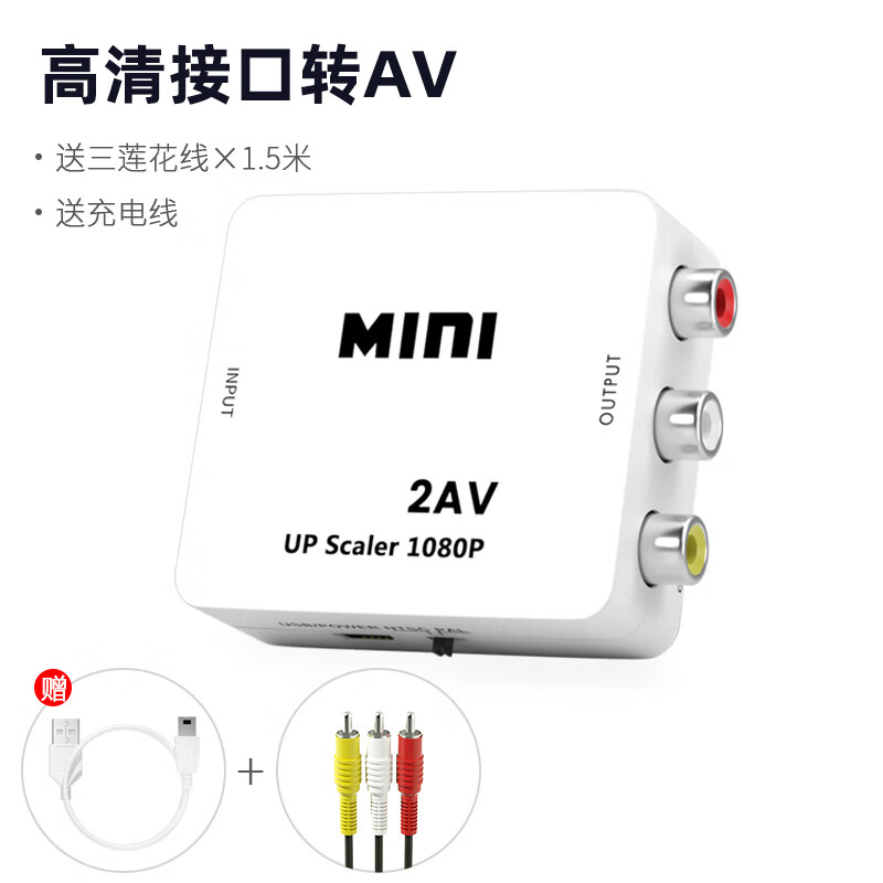 Tengfei腾飞HDMI转AV转换器VGA高清视频转RCA老式电视机顶盒高清接口三莲花机顶盒小霸王游戏机接电视机 高清接口转AV【含供电线+1.5米三莲花线】 精美盒装