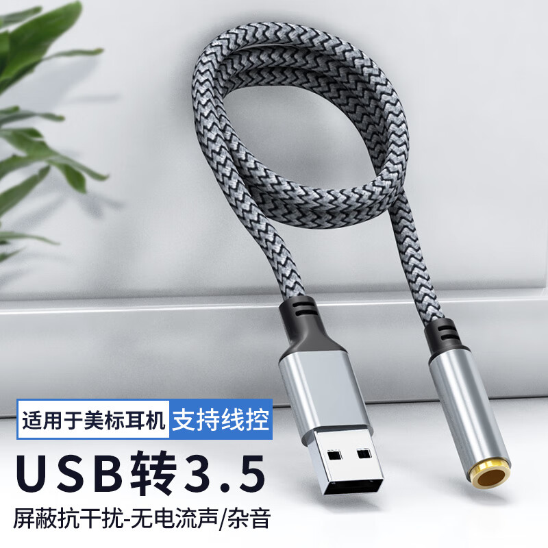 Tengfei腾飞usb转3.5mm音频线接口圆孔台式电脑笔记本耳机麦克风CD级音质适用于苹果华为转换器头二合一 USB转3.5mm母一米