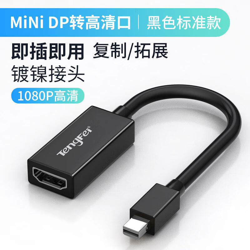 TengfeiMiniDP转HDMI VGA二合一转换器迷你DP雷电接口4K高清转接头适用苹果微软笔记本电脑接显示器投影仪 【Mini DP转高清接口转换器】黑色-1080P