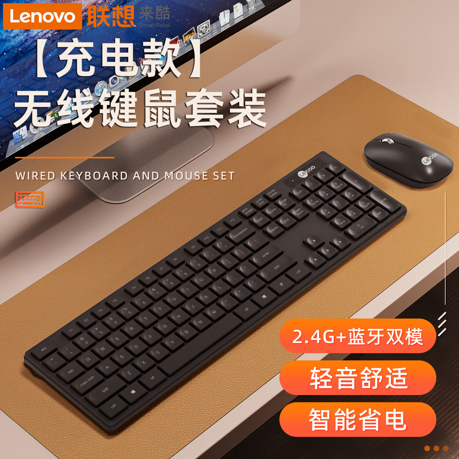 联想(lenovo)键盘鼠标套装 薄膜键盘有无线办公静音办公外接键盘便携 人体工学台式笔记本电脑键盘 充电款键鼠套装黑色【无线】