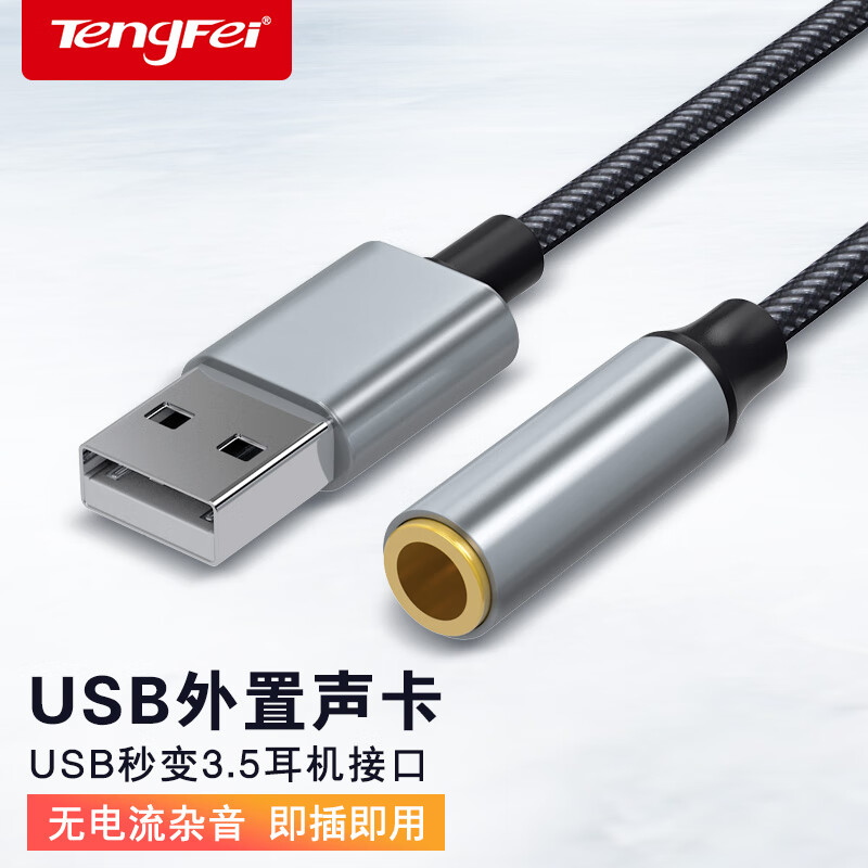 Tengfei腾飞usb转3.5mm音频线接口圆孔台式电脑笔记本耳机麦克风CD级音质适用于苹果华为转换器头二合一 【厂家直发】USB外置声卡