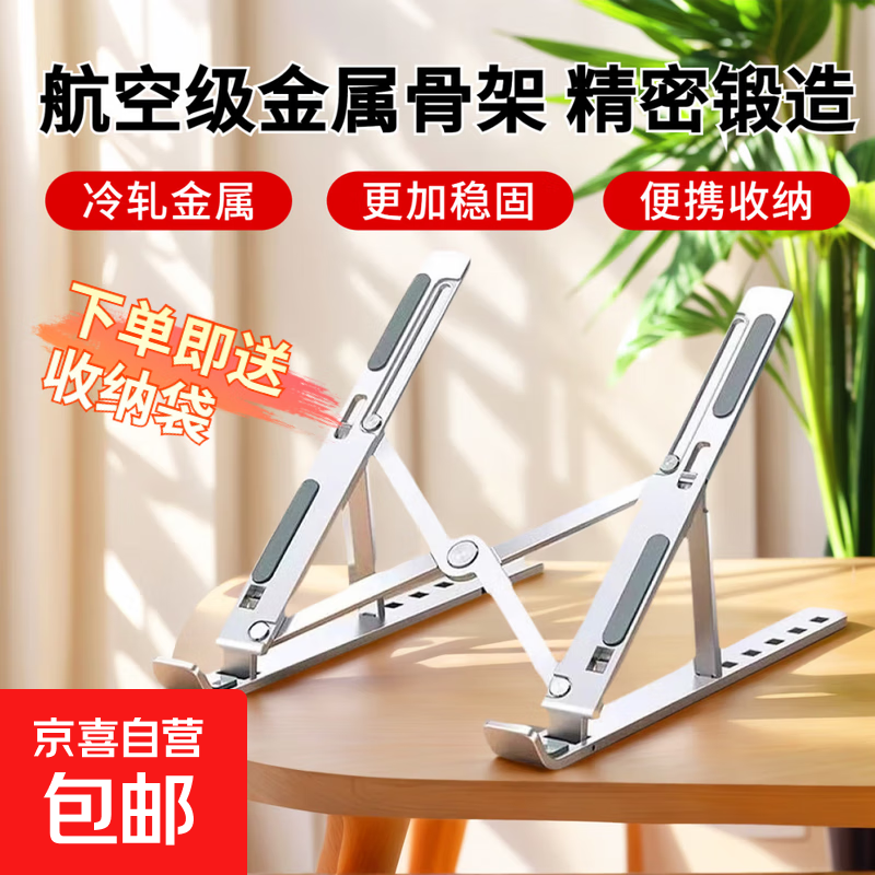 【JD快递】笔记本电脑支架便携折叠铝合金悬空升降散热器平板支架立式增高架 银色 | 加大加宽【笔记本电脑通用】金属款