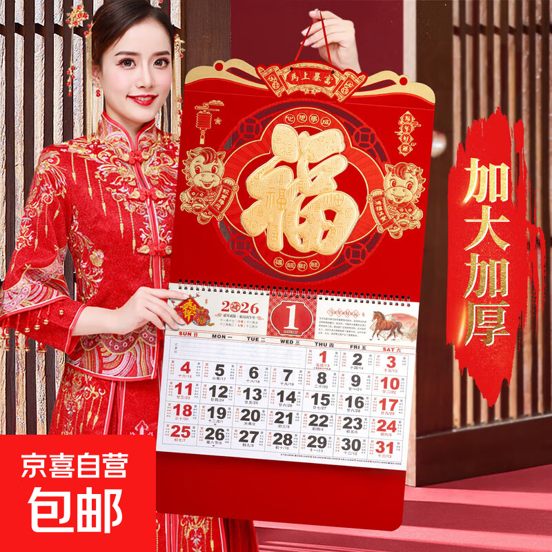 挂历2026年马年专版中国风大号挂墙新款福字吊牌手撕新年创意金箔特色客厅吊历豪华日历挂厉月历 正六开专版-骏马腾飞