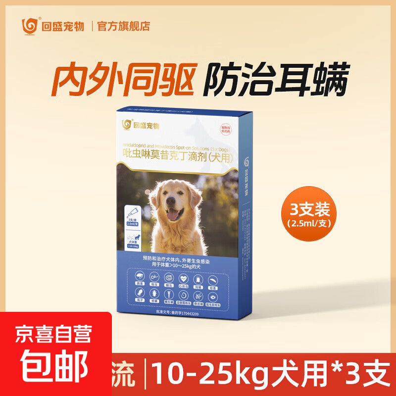 回盛宠物驱虫药猫犬体内外同驱猫咪狗狗驱除寄生虫跳蚤耳螨滴剂 犬用20-50斤 2.5ml 3只装