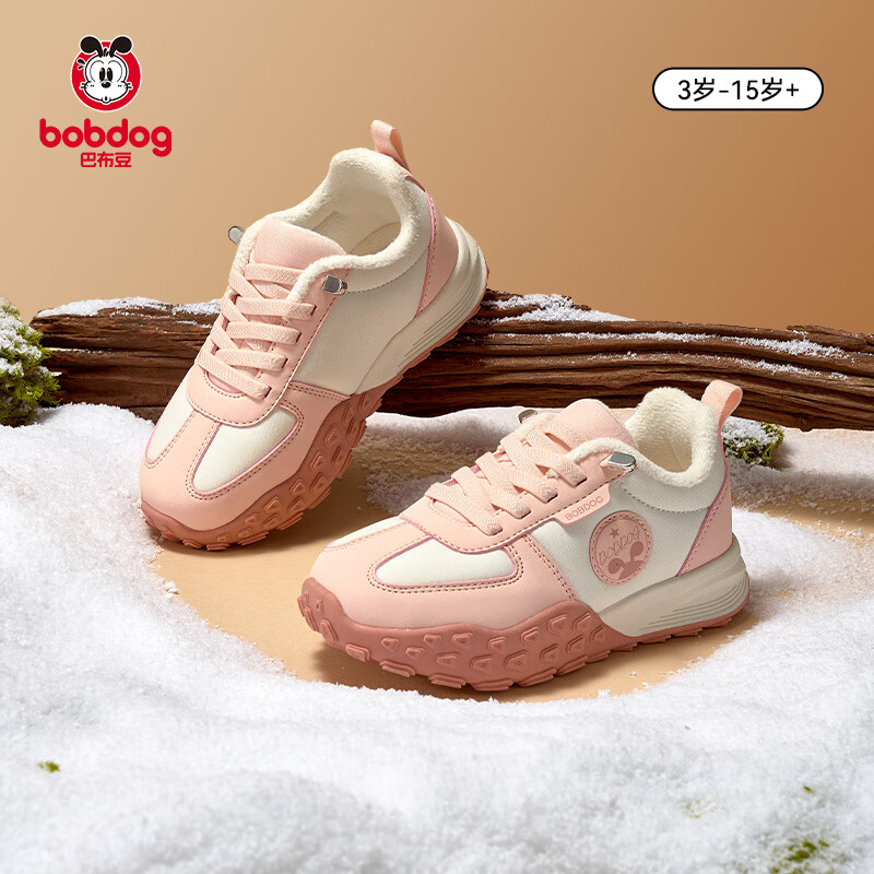 巴布豆中大童运动鞋四季款户外防滑登山鞋儿童运动休闲男童鞋阿甘鞋 粉白色【加绒冬款】 30 内长19.2cm,脚长18.5cm