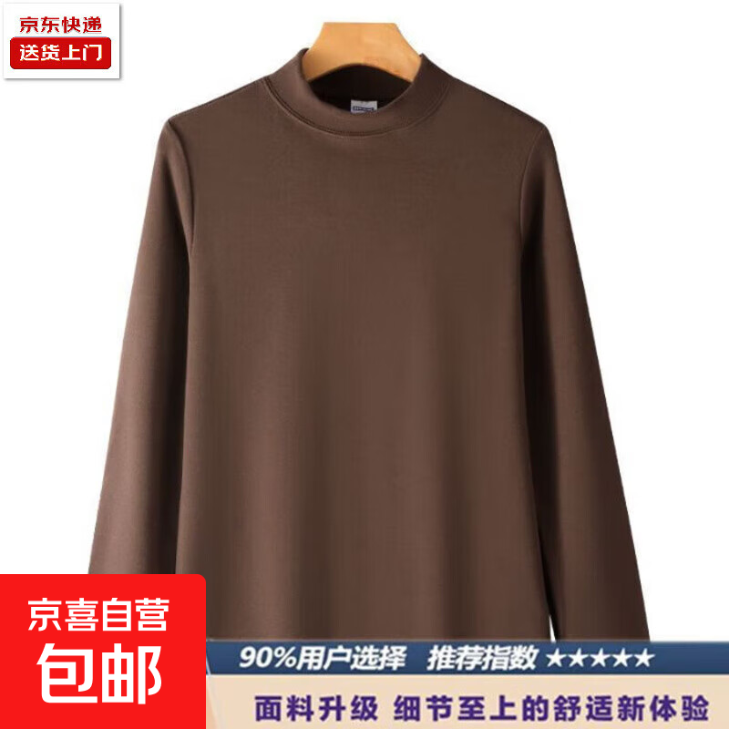 德绒秋冬季长袖t恤男士保暖内衣半高领加绒加厚打底衫男内搭上衣 咖啡色 130克面料 XL