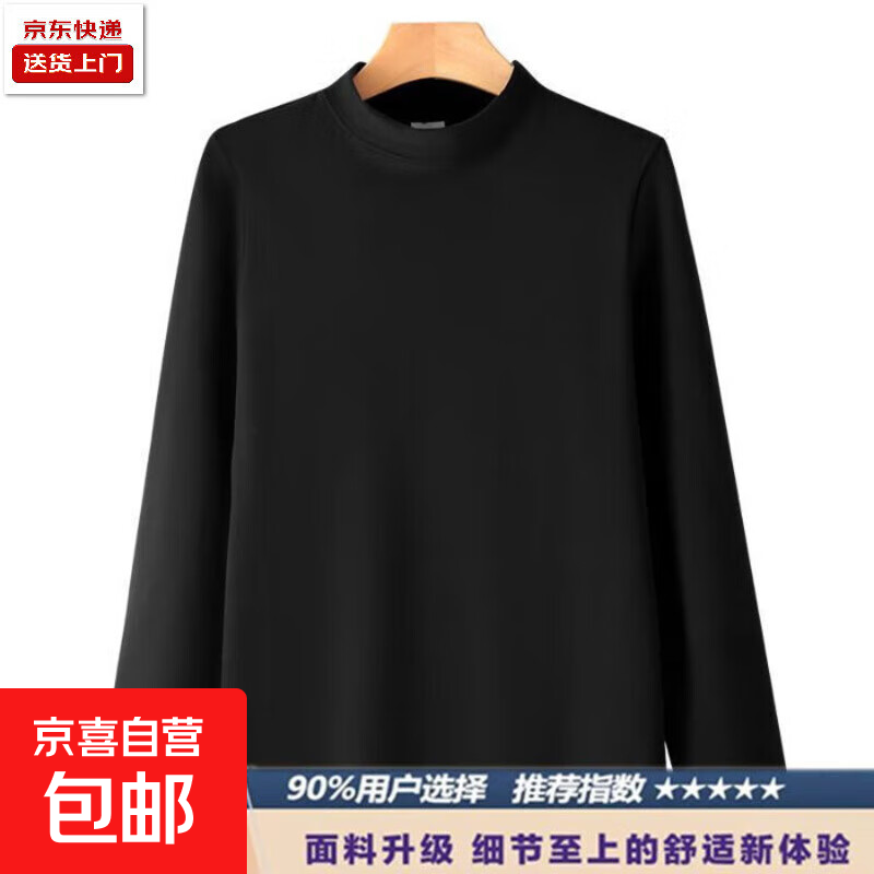 德绒秋冬季长袖t恤男士保暖内衣半高领加绒加厚打底衫男内搭上衣 黑色 130克面料 L