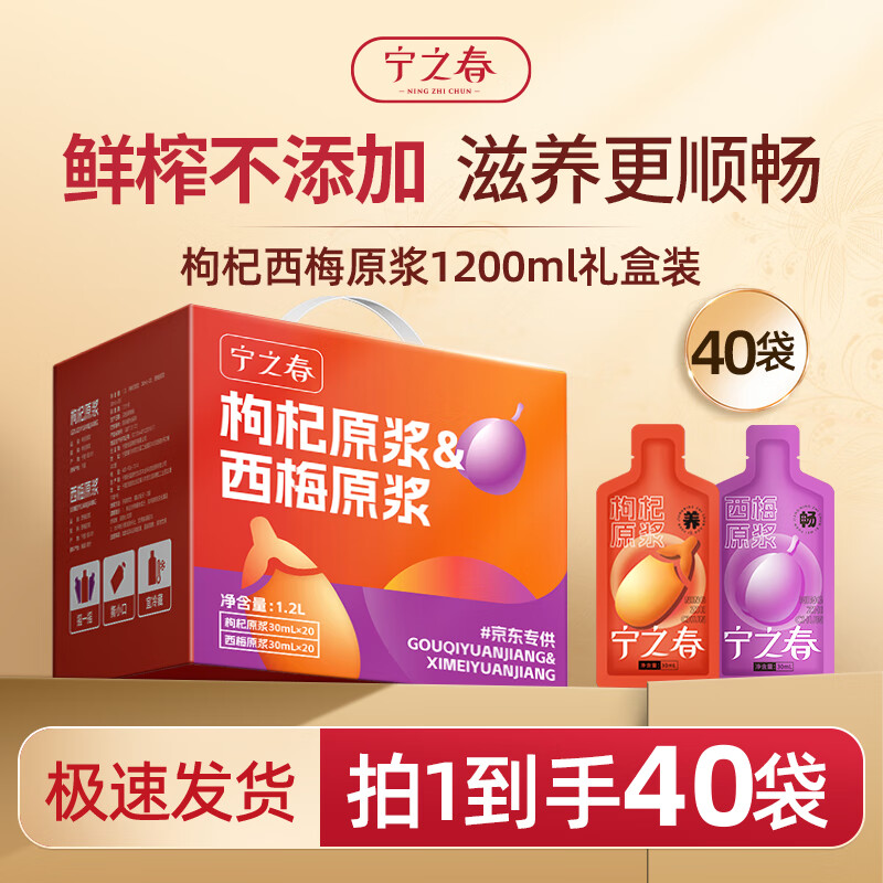 宁之春红黑枸杞原浆2700ml礼盒滋补宁夏中宁枸杞子鲜果不添加送长辈礼物 西梅原浆1200ml礼盒