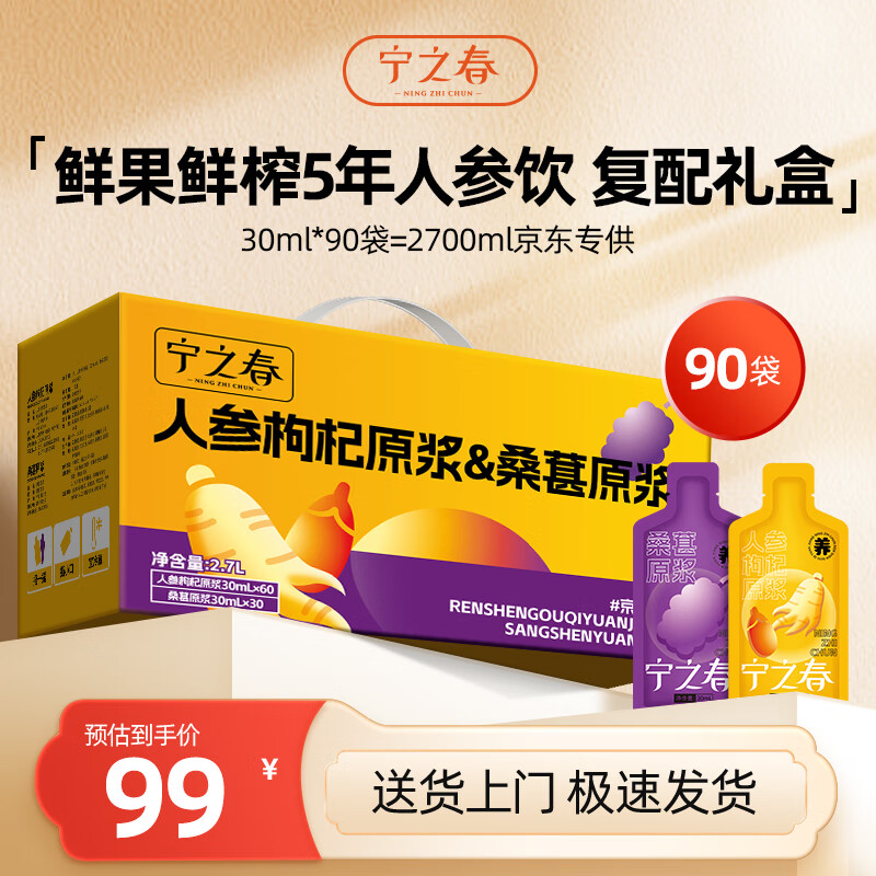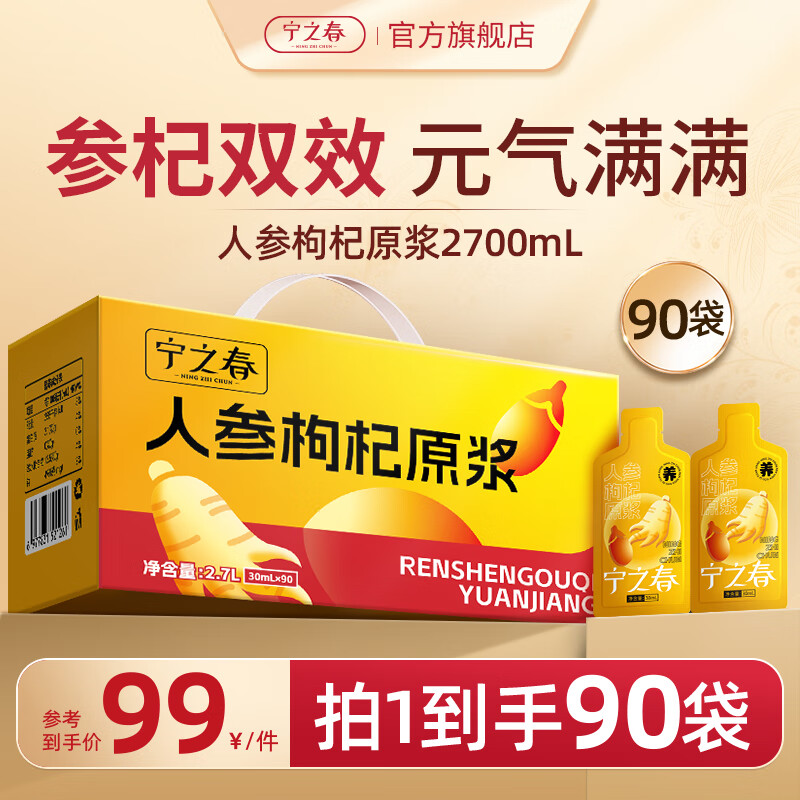 宁之春红黑枸杞原浆2700ml礼盒滋补宁夏中宁枸杞子鲜果不添加送长辈礼物 人参枸杞原浆2700ml礼盒