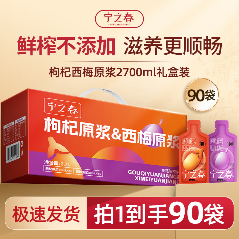 宁之春红黑枸杞原浆2700ml礼盒滋补宁夏中宁枸杞子鲜果不添加送长辈礼物 枸杞西梅原浆2700ml礼盒