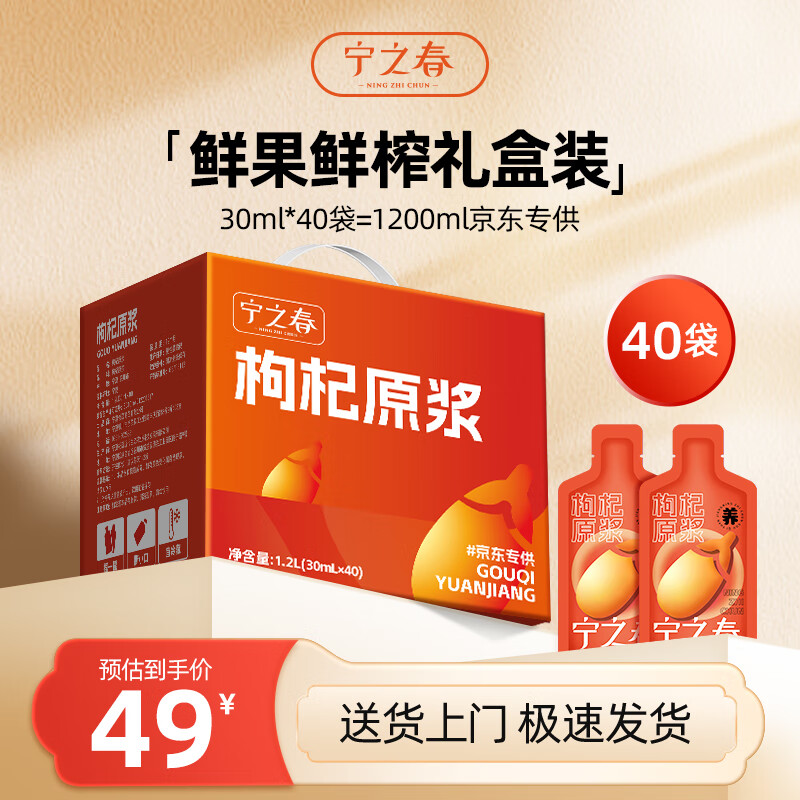 宁之春红黑枸杞原浆2700ml礼盒滋补宁夏中宁枸杞子鲜果不添加送长辈礼物 枸杞原浆1200ml礼盒