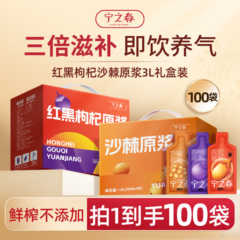 宁之春红黑枸杞原浆2700ml礼盒滋补宁夏中宁枸杞子鲜果不添加送长辈礼物 红黑枸杞原浆1.2L+沙棘原浆1.8L