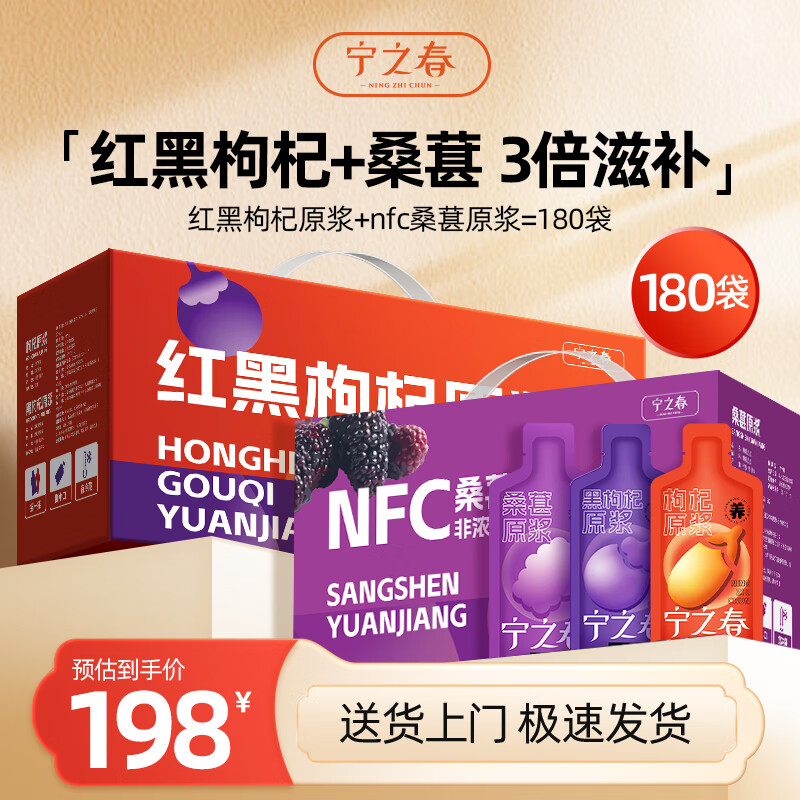 宁之春红黑枸杞原浆2700ml礼盒滋补宁夏中宁枸杞子鲜果不添加送长辈礼物 【必买】枸杞桑葚原浆1200ml礼盒