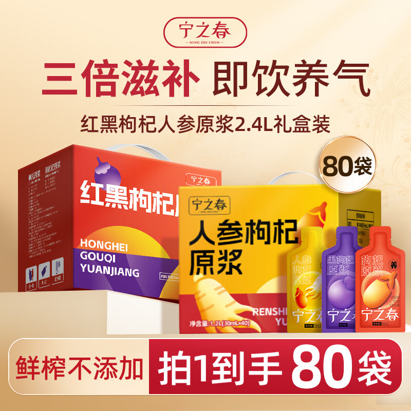 宁之春红黑枸杞原浆2700ml礼盒滋补宁夏中宁枸杞子鲜果不添加送长辈礼物 红黑枸杞原浆1.2L+人参枸杞1.2L
