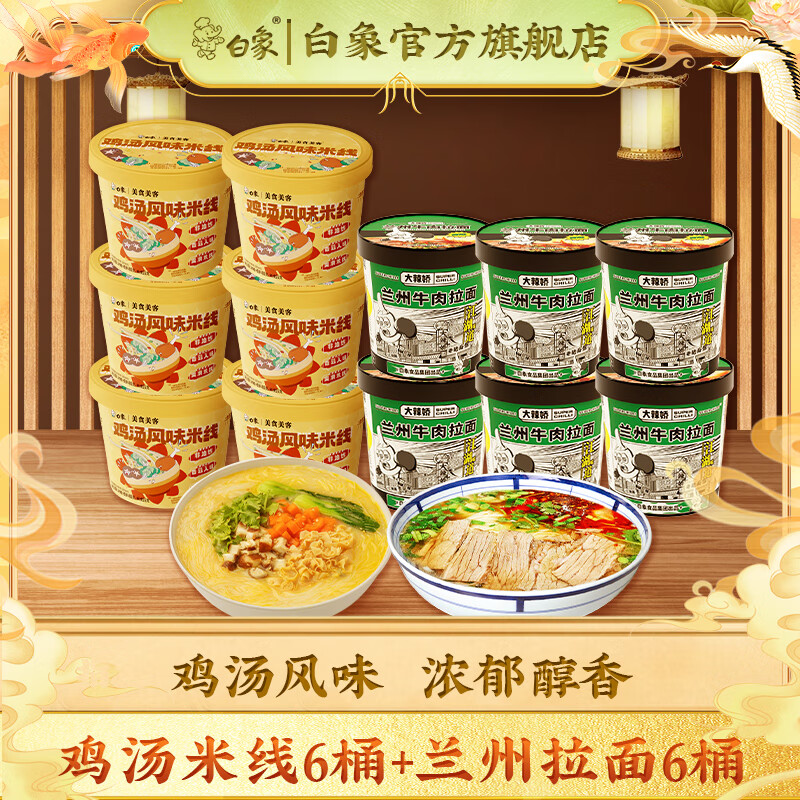 白象美食美客鸡汤风味米线整箱桶装方便速食冲泡米线夜宵休闲食品 鸡汤米线6桶+兰州拉面6桶