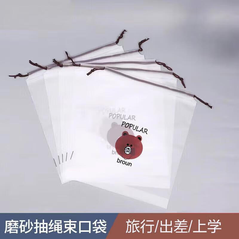 旅行内衣分装抽绳式收纳袋可爱小熊抽绳束口生活用品收纳包 18cm*25cm*小熊抽绳袋*磨砂 10个装