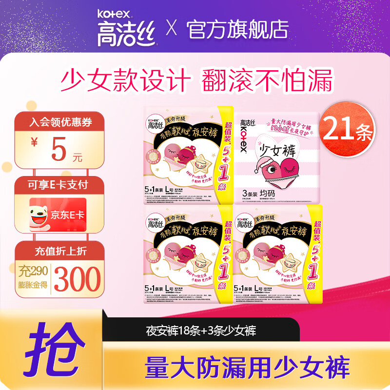 高洁丝均码夜安裤安睡裤安心裤少女裤裤型卫生巾防漏经期裤姨妈巾安全裤 F码-均码 3条 80-110斤 夜安裤L码18条