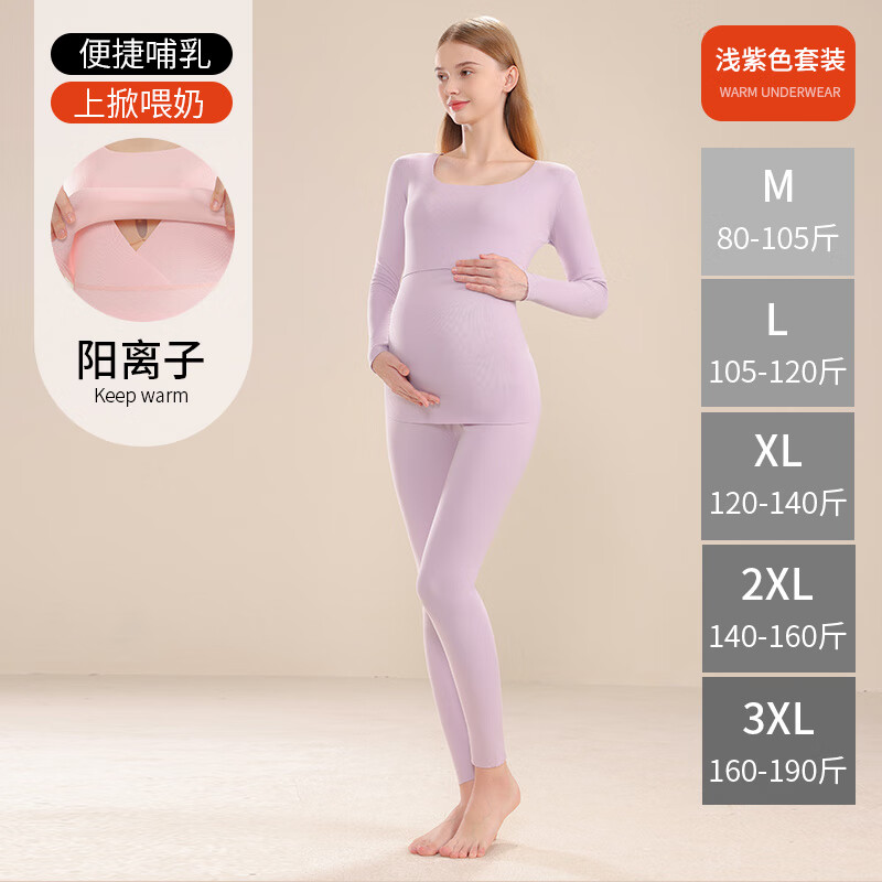ROVO孕妇保暖内衣哺乳秋衣秋裤套装秋冬产后喂奶怀孕期打底衣月子服 浅紫套装【7A抗菌 双面暖绒】 2XL