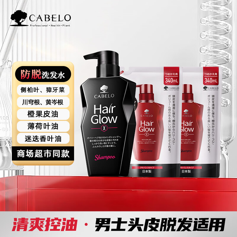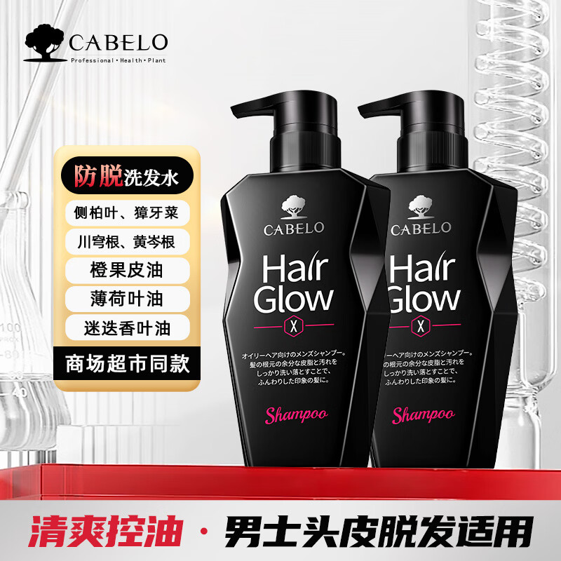 卡蓓诺(CABELO)赋活防脱洗发水 清爽控油强健固发 男士头皮脱发适用【日本进口】 【男士防脱发】清爽控油 洗发水 350ml*2瓶