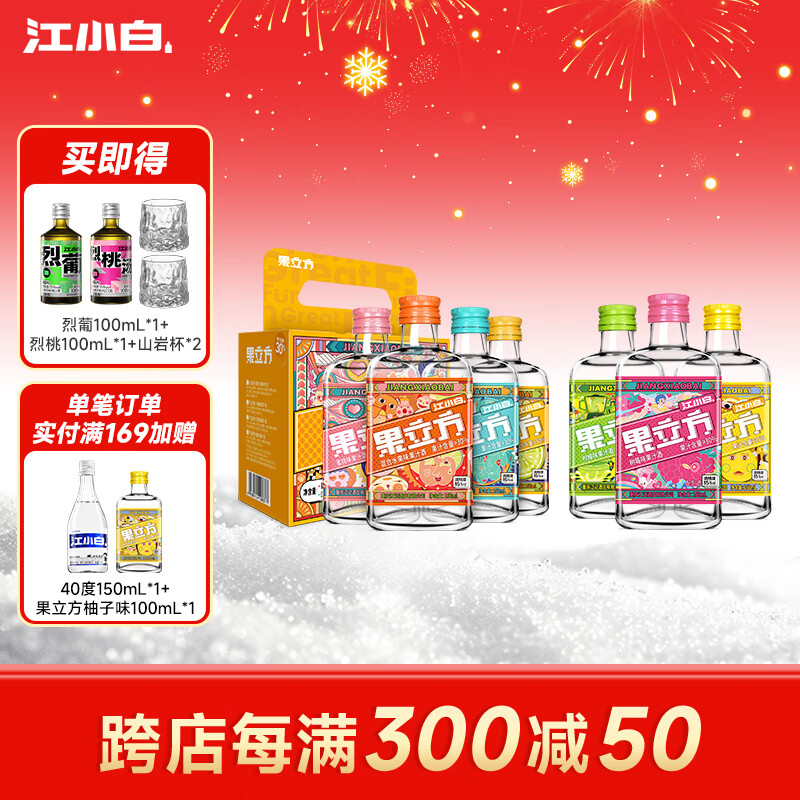 江小白果立方果汁酒15-23度果酒树莓味蜜桃味 低度微醺水果酒节日送礼 混合口味 168mL 7瓶 (口味全家福)