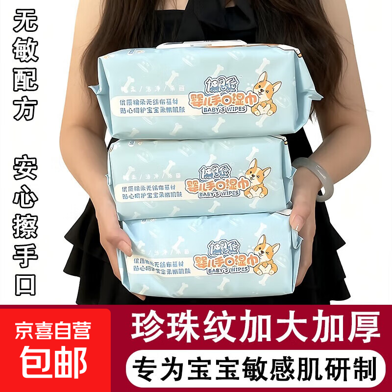 加恩宝孕妇儿童手口湿巾珍珠纹高端家庭装巨大包 巨无霸超大包80抽*3包装