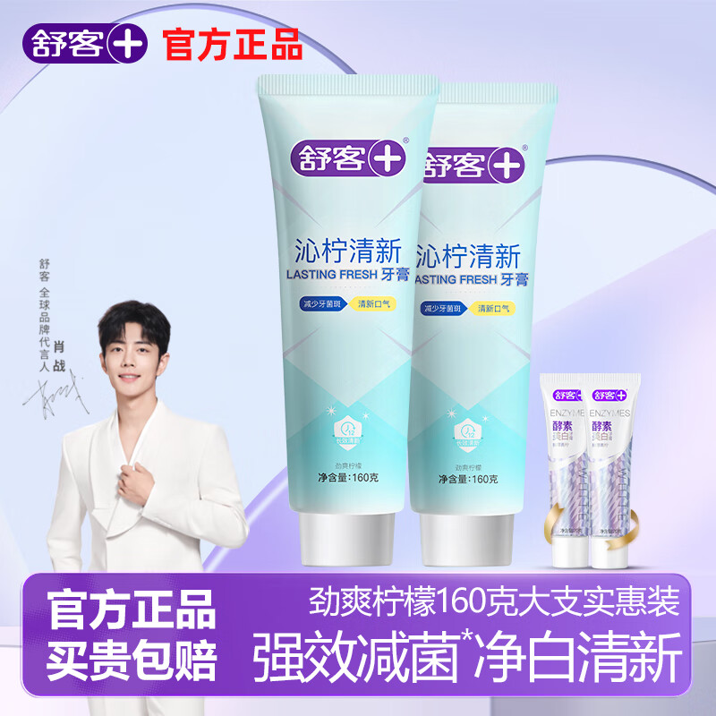 舒客专研沁柠清新强效减菌持久清凉牙膏男女家庭实惠装官方正品 沁柠清新 160g*2支 +小样*2