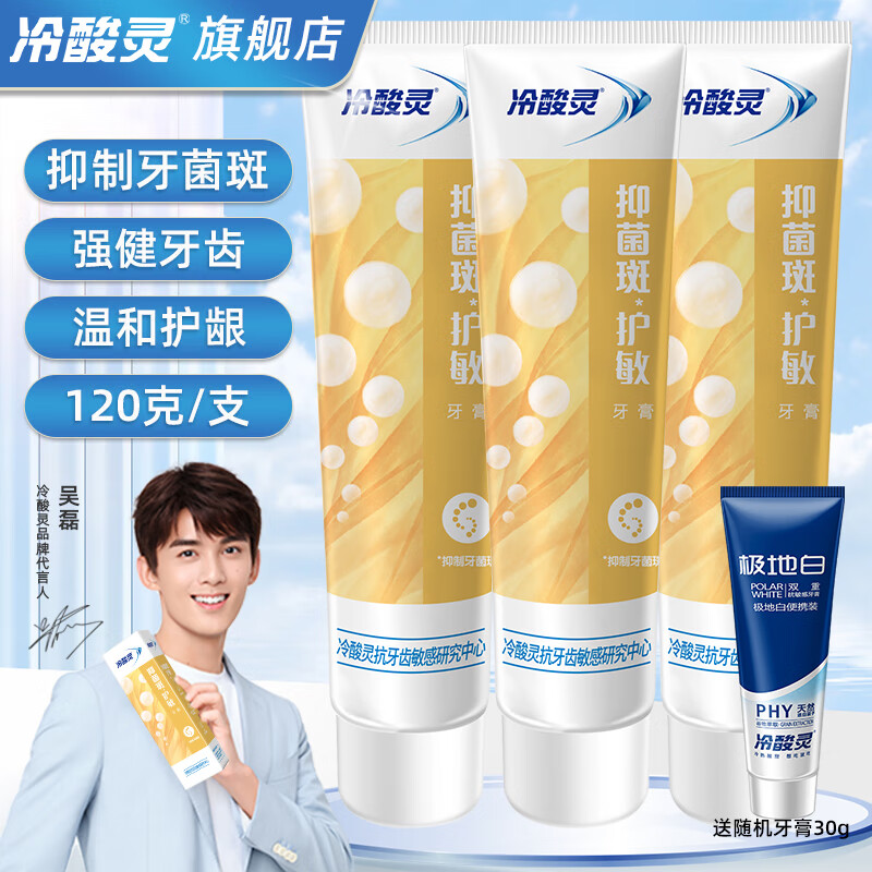 冷酸灵抑菌斑护敏牙膏抗敏感牙膏草本配方清新口气清洁牙齿囤货装旗舰 【超值囤】抑菌斑护敏120g*3支