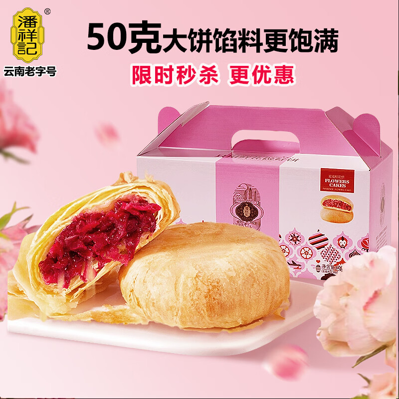 潘祥记 鲜花饼休闲零食早餐面包云南特产 50g*10枚散装特产糕点 鲜花饼50g*10枚