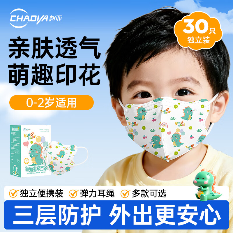 超亚婴童口罩儿童款3D立体口罩一次性冬季保暖幼儿宝宝0-9岁适用防尘 【0-2岁】胖胖龙【30只独立装】