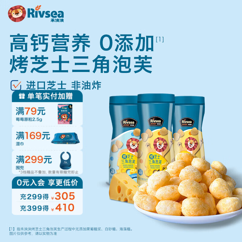 禾泱泱烤芝士三角泡芙 宝宝零食无添加白砂糖泡芙儿童非油炸 3罐三角泡芙(原味1+香蕉2)42g*3