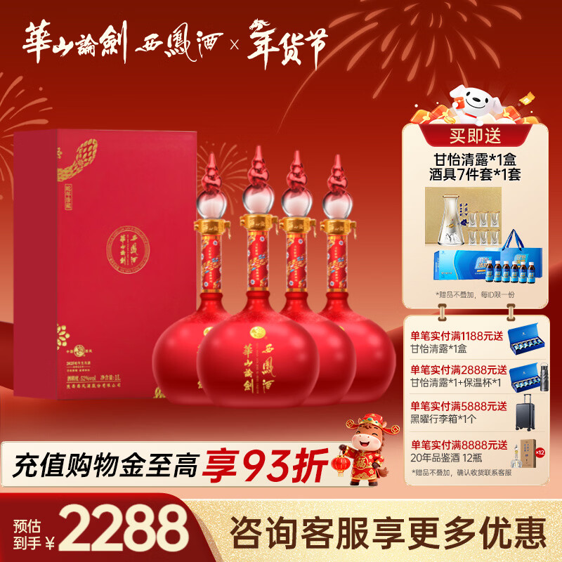 西凤华山论剑52度蛇年纪念酒经典凤香型白酒名酒聚餐送礼礼盒 52度 1000mL 4瓶 整箱