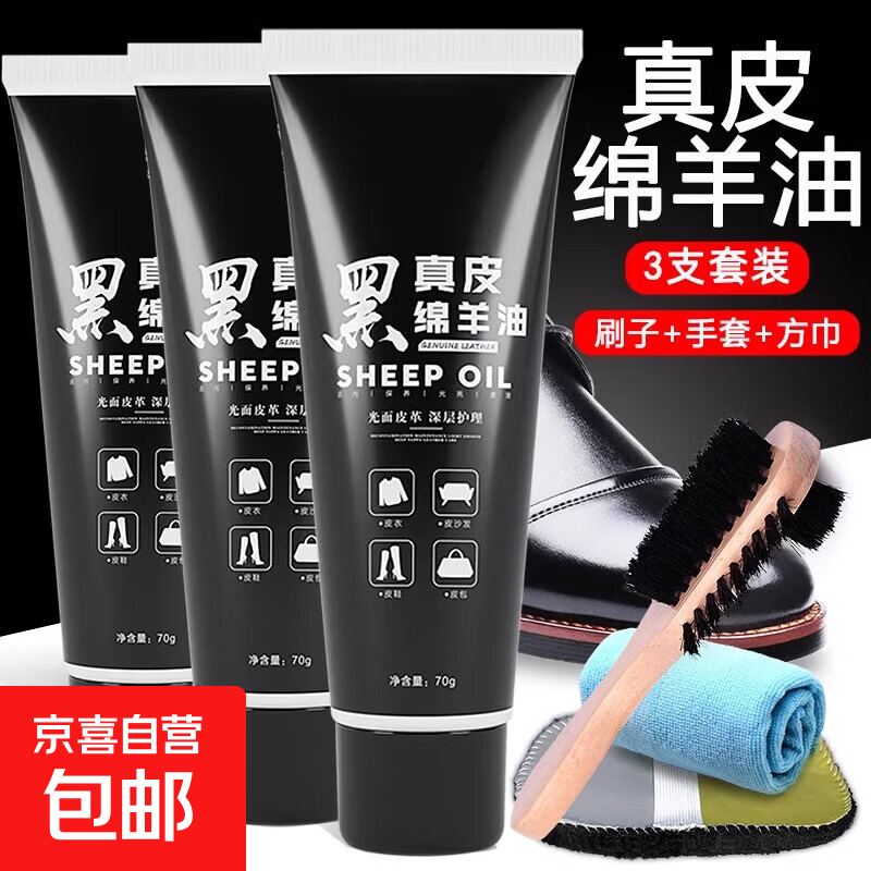 皮鞋油70g黑色真皮保养油无色护理擦鞋套装刷子皮革皮衣送工具 黑色三支
