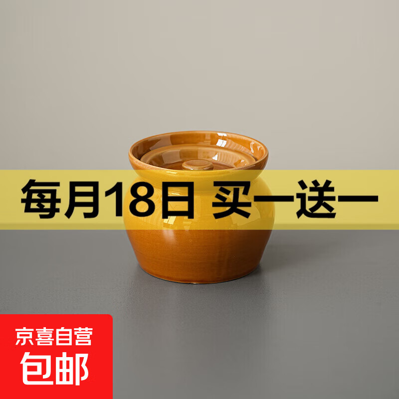 瓦罐炖盅煨汤罐陶瓷隔水蒸家用煲汤陶瓷罐带盖沙县小吃老式炖盅 深棕色单个 450ml 直径11高度9