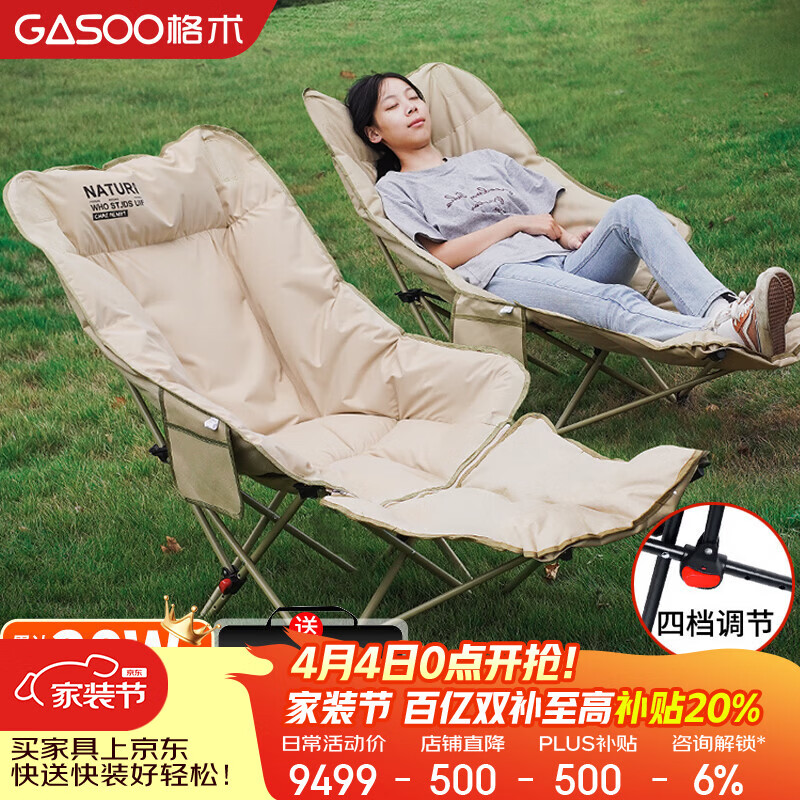 gosoo躺椅午睡椅一体户外折叠椅露营椅子加棉月亮椅可躺可睡午休折叠床