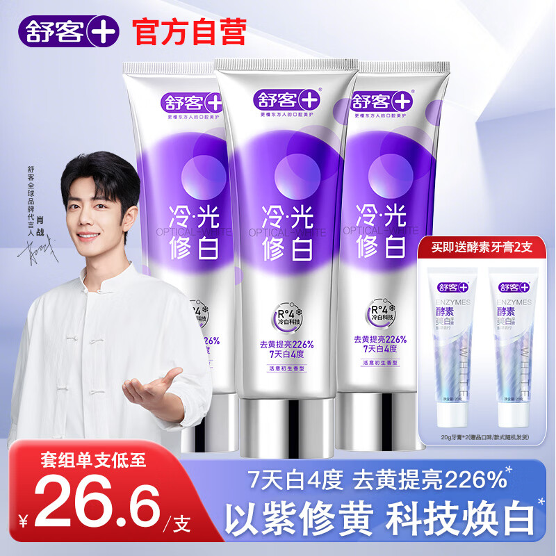 舒客酵素美白牙膏去黄清新口气含氟防蛀男女生专用非去口臭官方正品 巩固装】色修美白牙膏 110g*3支