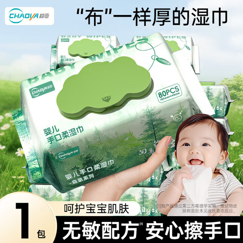 超亚孕产妇湿巾EDI纯水家庭婴童湿巾纸巾加厚擦脸擦手产后护理清洁 森氧系列 【体验装】 80抽 1包