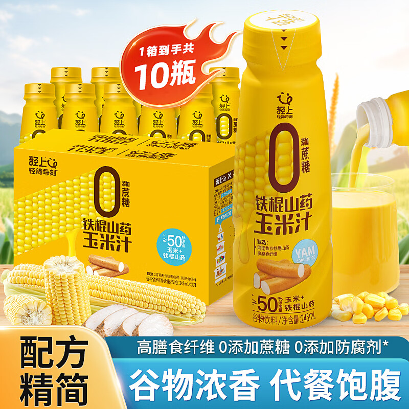 轻上【年货礼盒】轻上椰汁0糖生椰1L大瓶东南亚进口椰子汁饮料整箱 铁棍山药玉米汁245ml*10瓶