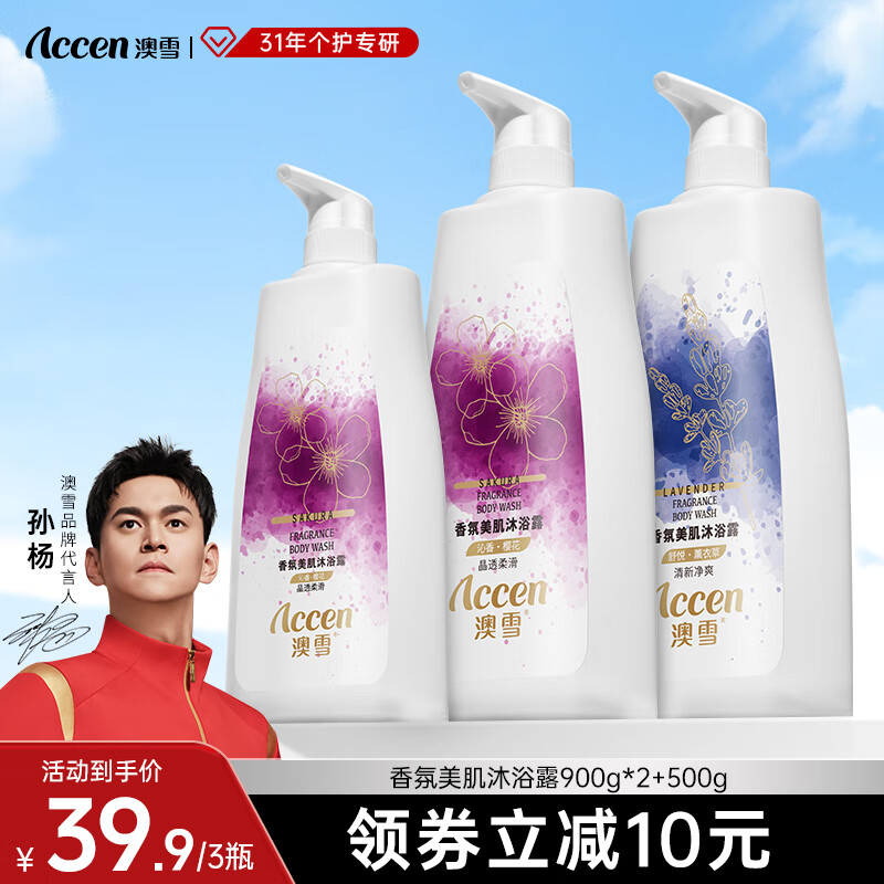 澳雪(accen)孙杨代言 香氛美肌花果香沐浴露套装留香沐浴液 900g薰衣草+900g樱花+500g樱花