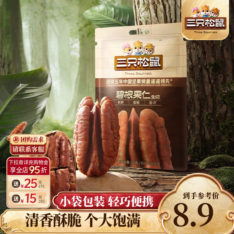 三只松鼠量贩碧根果长寿果特大颗粒健康坚果零食特产休闲食品节日送礼 【尝鲜装】碧根果仁碎25g*1袋