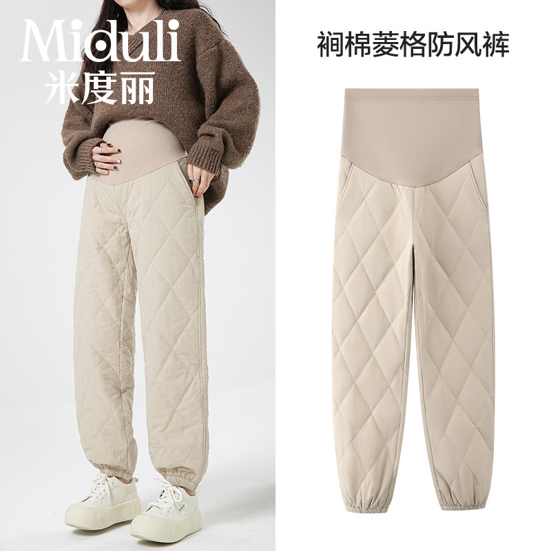 米度丽孕妇裤子秋冬款2025新款加绒冬季加厚仿羽绒棉裤外穿冬天休闲卫裤 米杏色 XXL码(建议140-170斤左右)