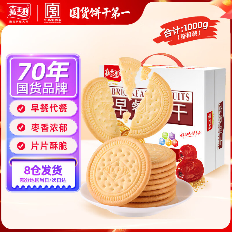 嘉士利饼干早餐饼干红枣味1000g/盒送礼提手零食送礼礼盒代餐食品