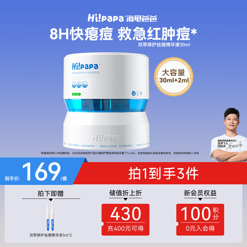 海龟爸爸祛痘精华液次抛急救瘪痘青少年控油防反复淡化红痘印30ml