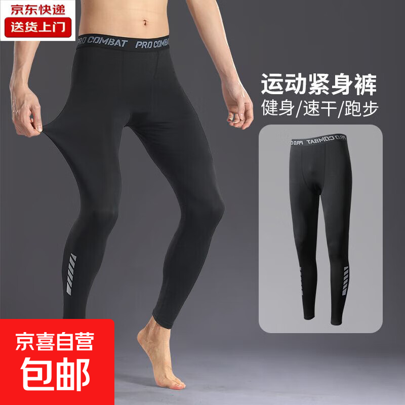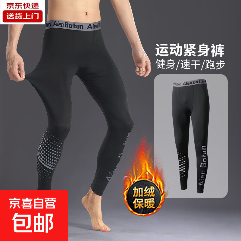 健身运动打底裤男秋冬季加绒保暖紧身裤高弹压缩跑步瑜伽训练秋裤 J17科幻【二代运动保暖绒】 L 【建议100-115斤】